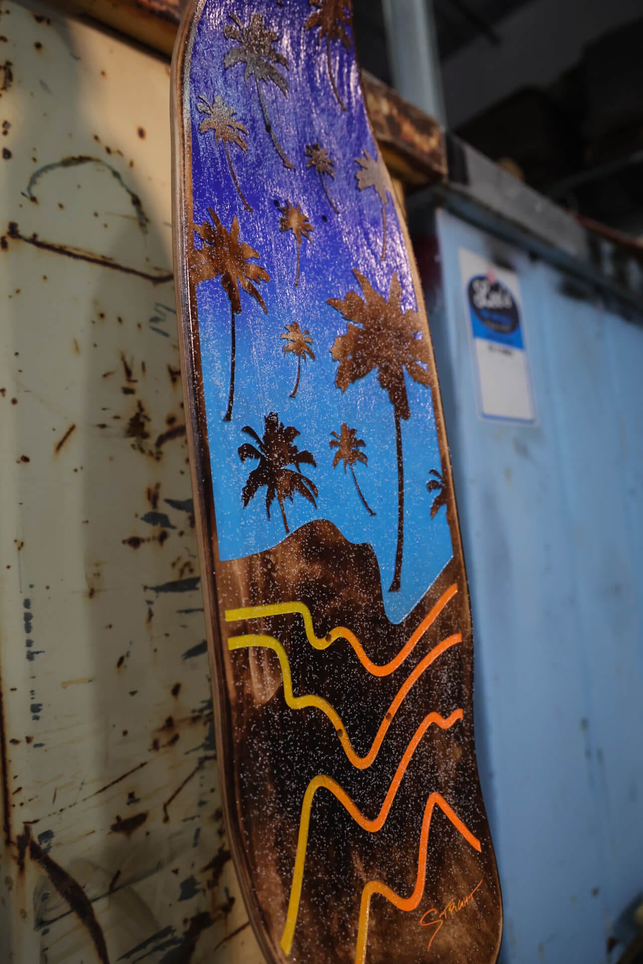 Each deck is sand carved and painted by hand in our San Diego art warehouse.